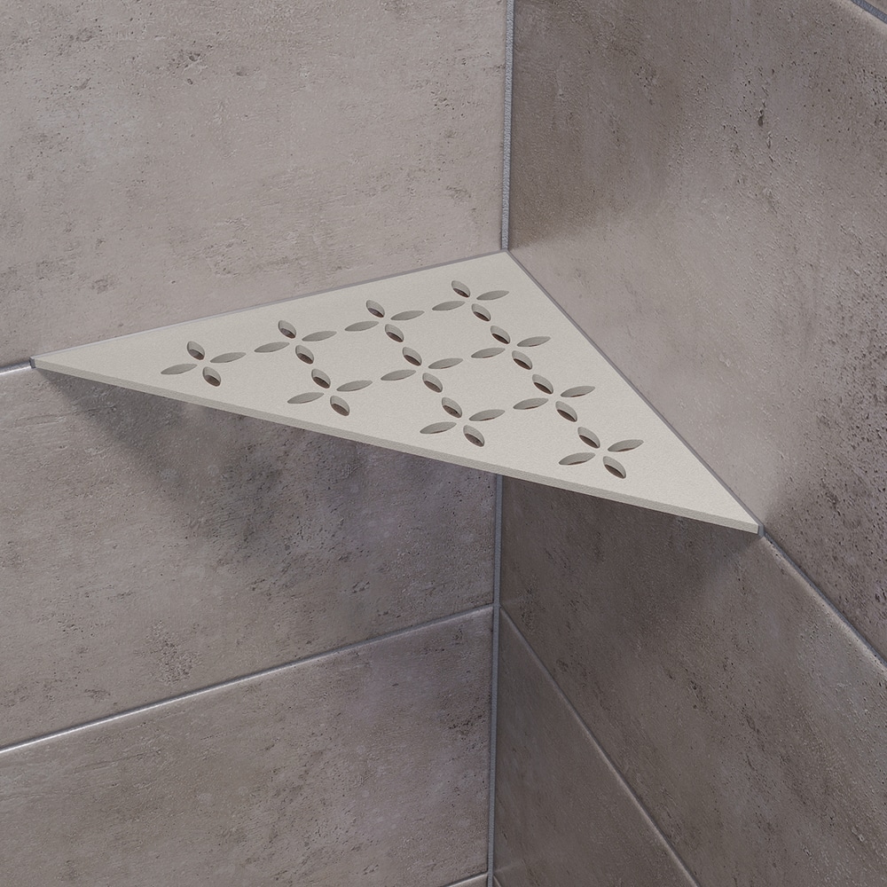De Schlüter-SHELF-E-S1 is een slimme opbergoplossing met driehoekige planchetten, speciaal ontworpen voor plaatsing in hoeken. Verkrijgbaar in diverse designvarianten zoals FLORAL, CURVE, PURE, SQUARE en WAVE, zodat u het planchet perfect kunt afstemmen op uw interieur. U heeft de keuze uit geborsteld roestvrij staal of aluminium met een TRENDLINE poedercoating voor een stijlvolle en duurzame afwerking.